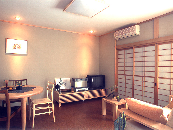 和室の押入れと床の間を撤去して部屋を広げ、真壁造りの和の趣を残した洋室としてのリビング・ダイニングに変更しました。